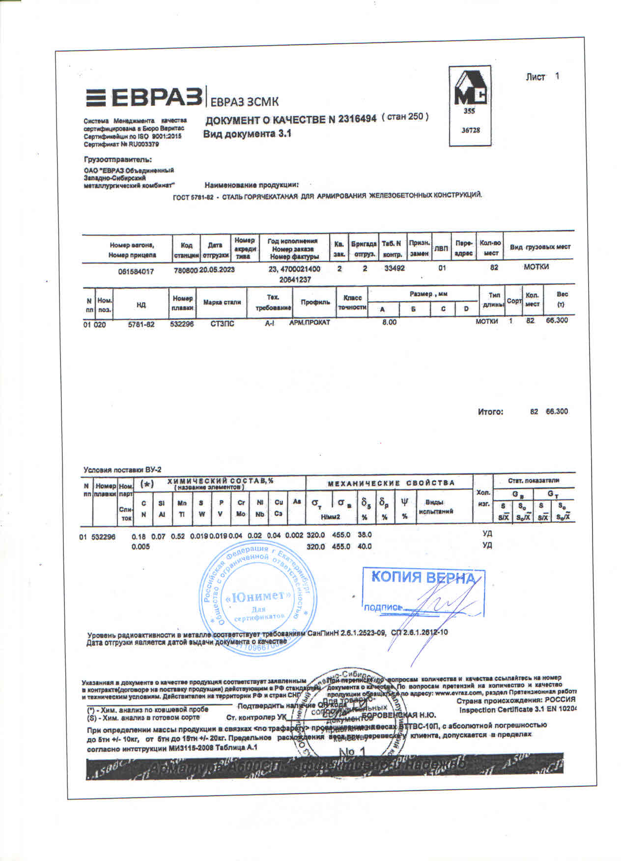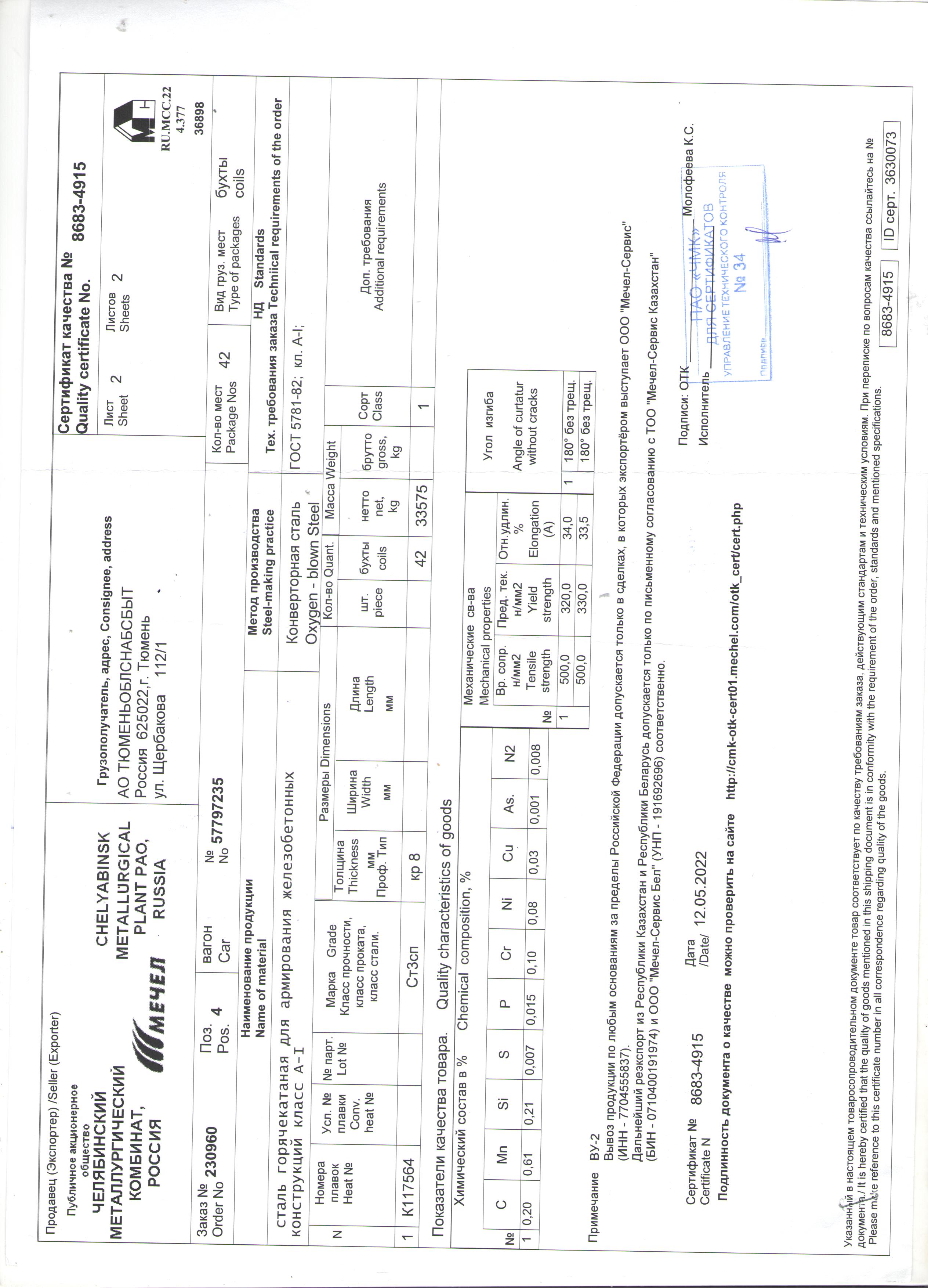 Сертификаты на товар