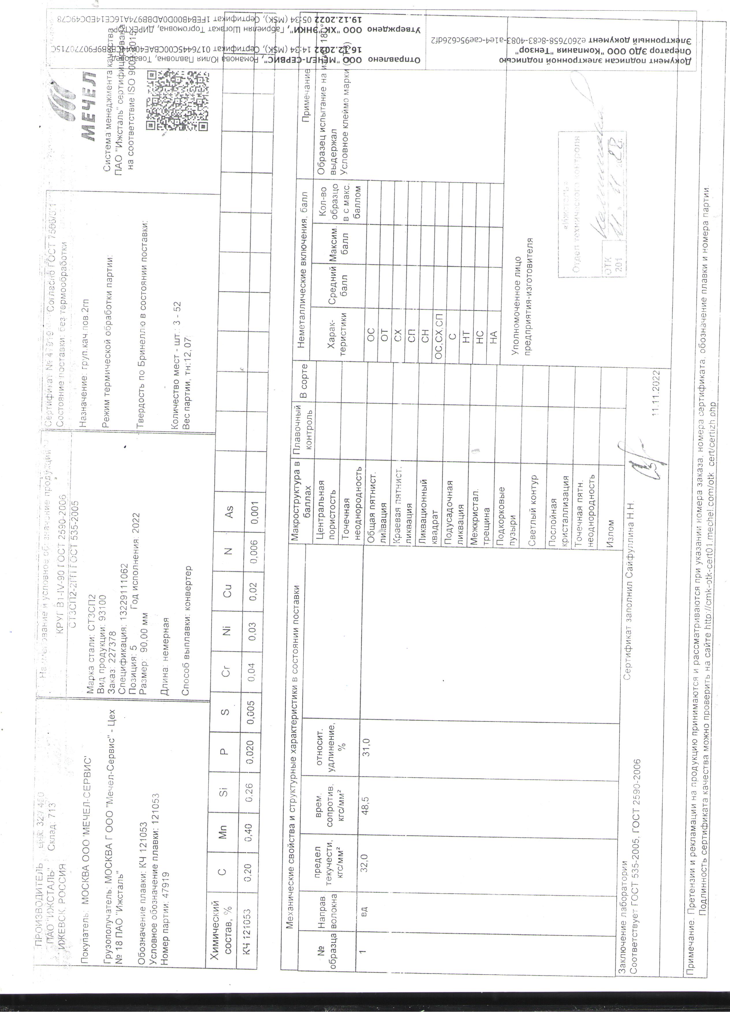 Сертификаты на товар