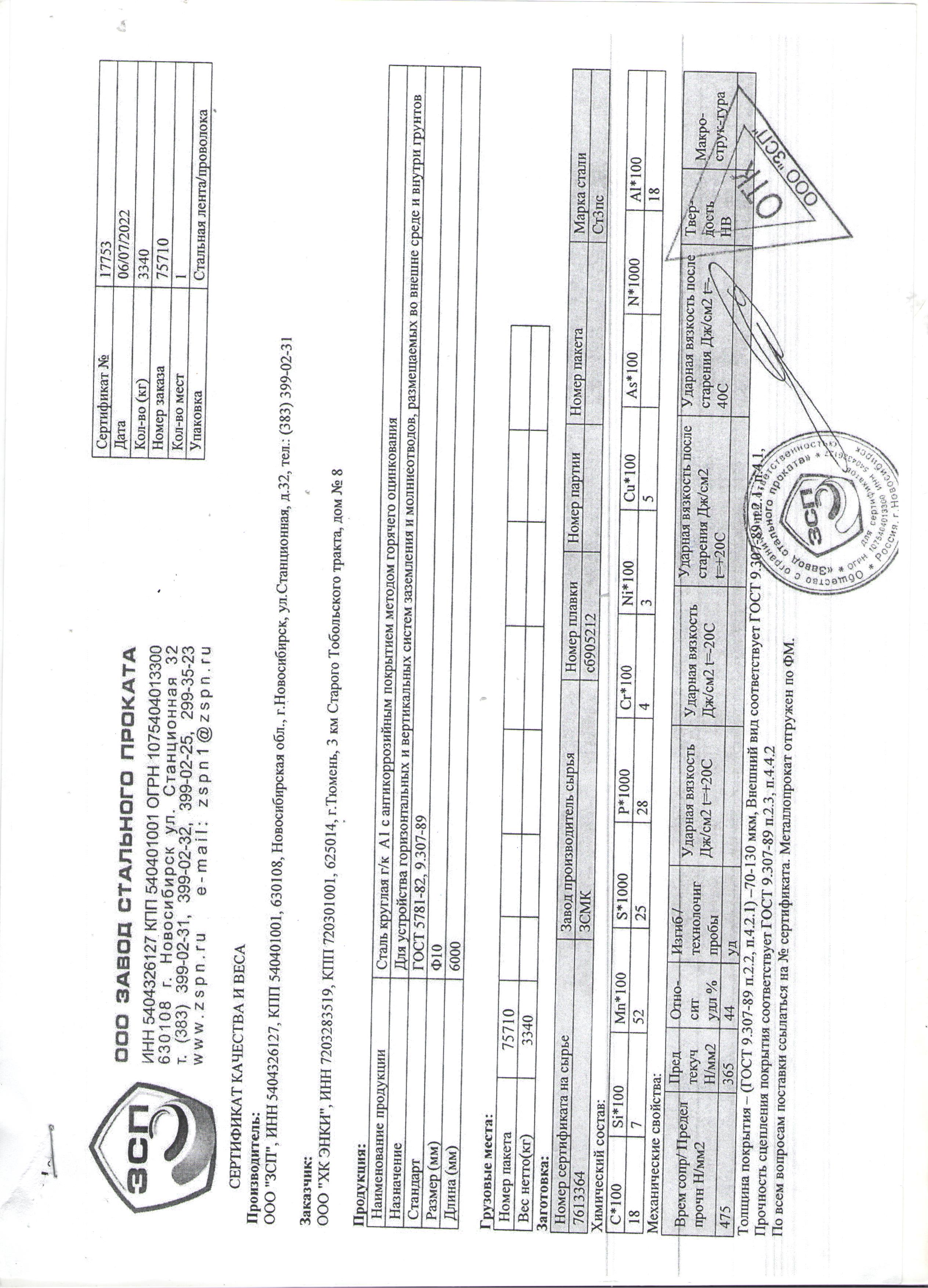 Круг оцинк. ф.10 А1 Ст.3 ГОСТ5781-82 1/6м