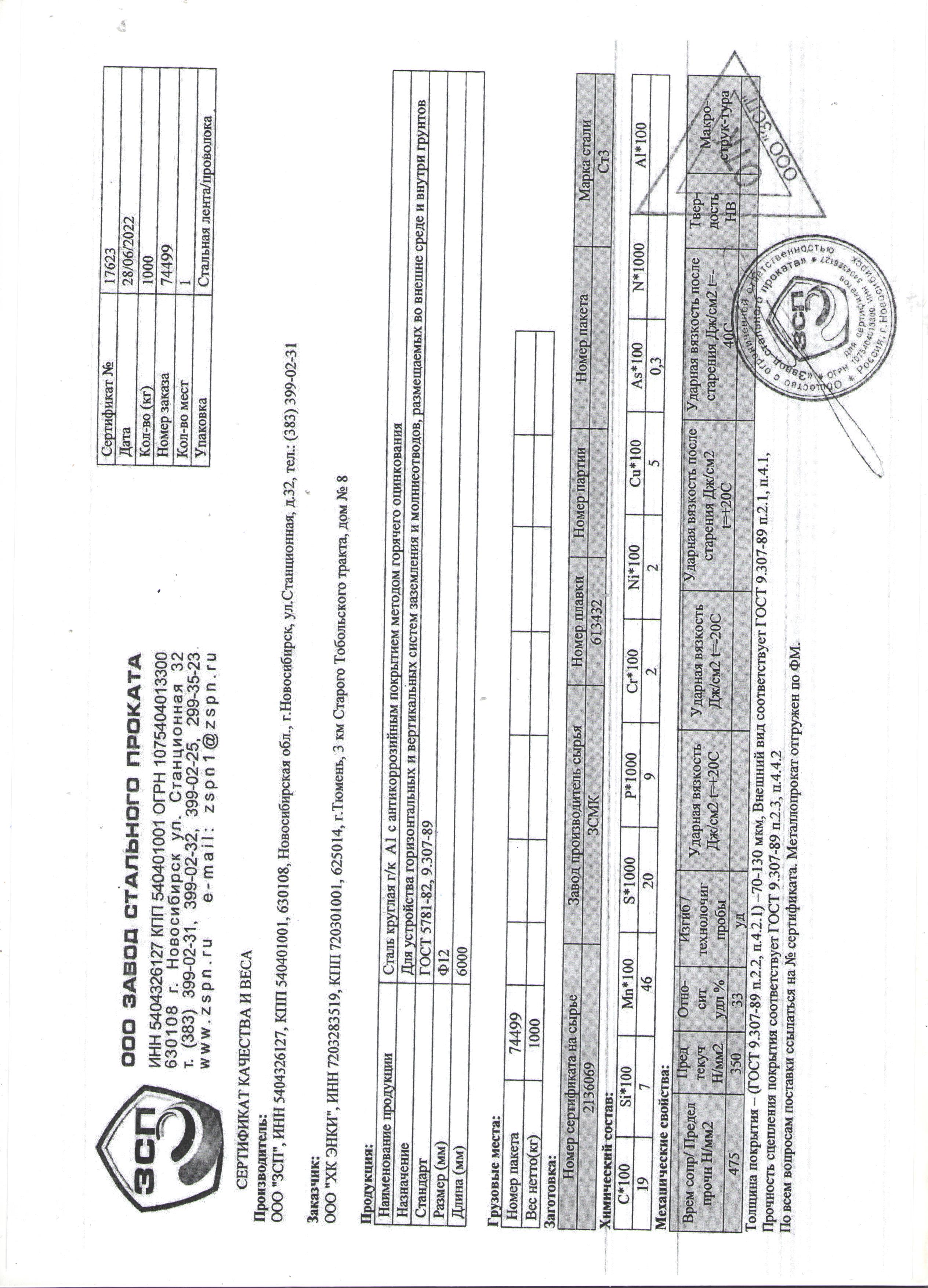 Круг оцинк. ф.12 А1 Ст.3 ГОСТ5781-82 1/6м