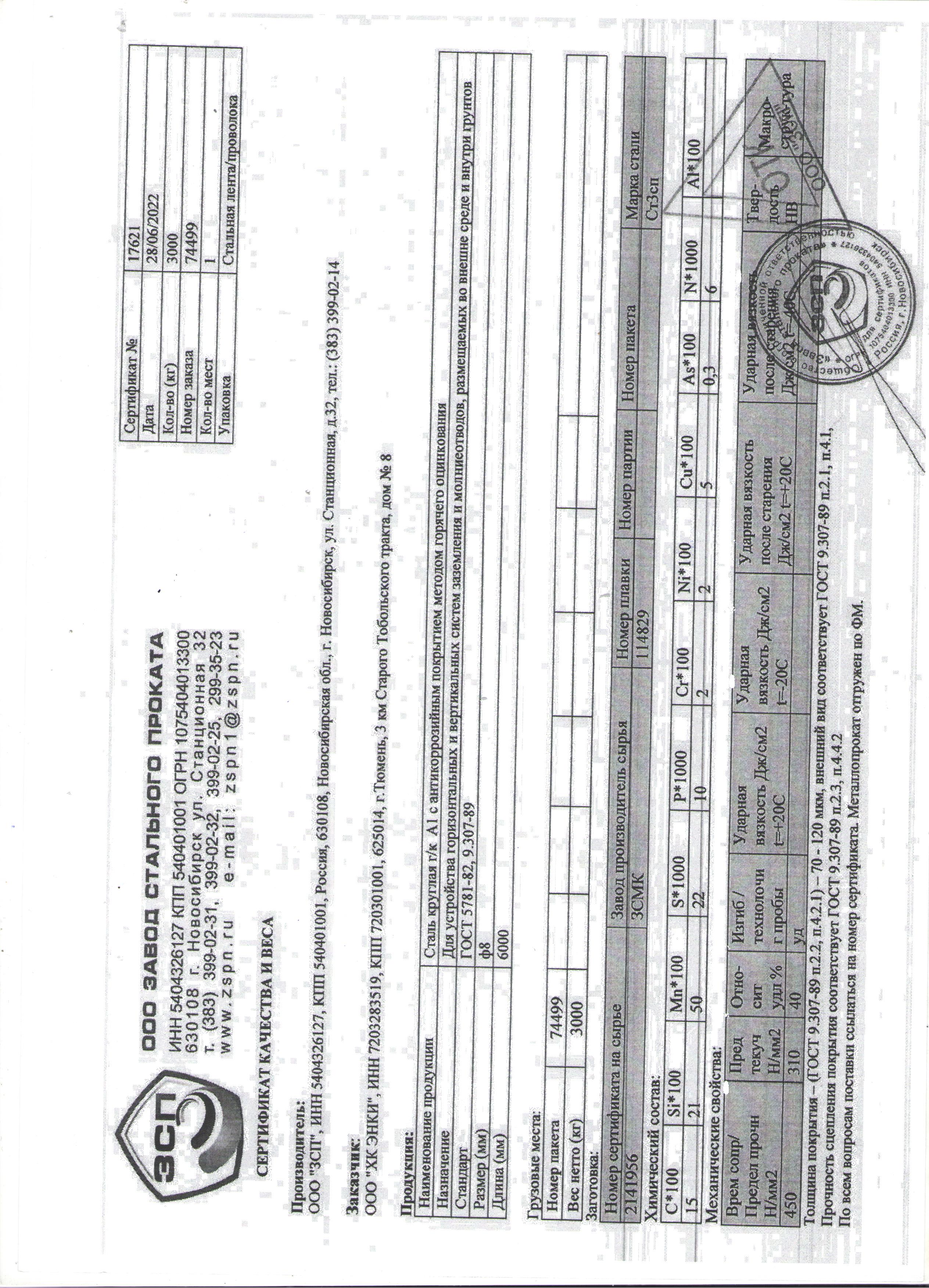 Круг оцинк. ф. 8 А1 Ст.3 ГОСТ5781-82 1/6м