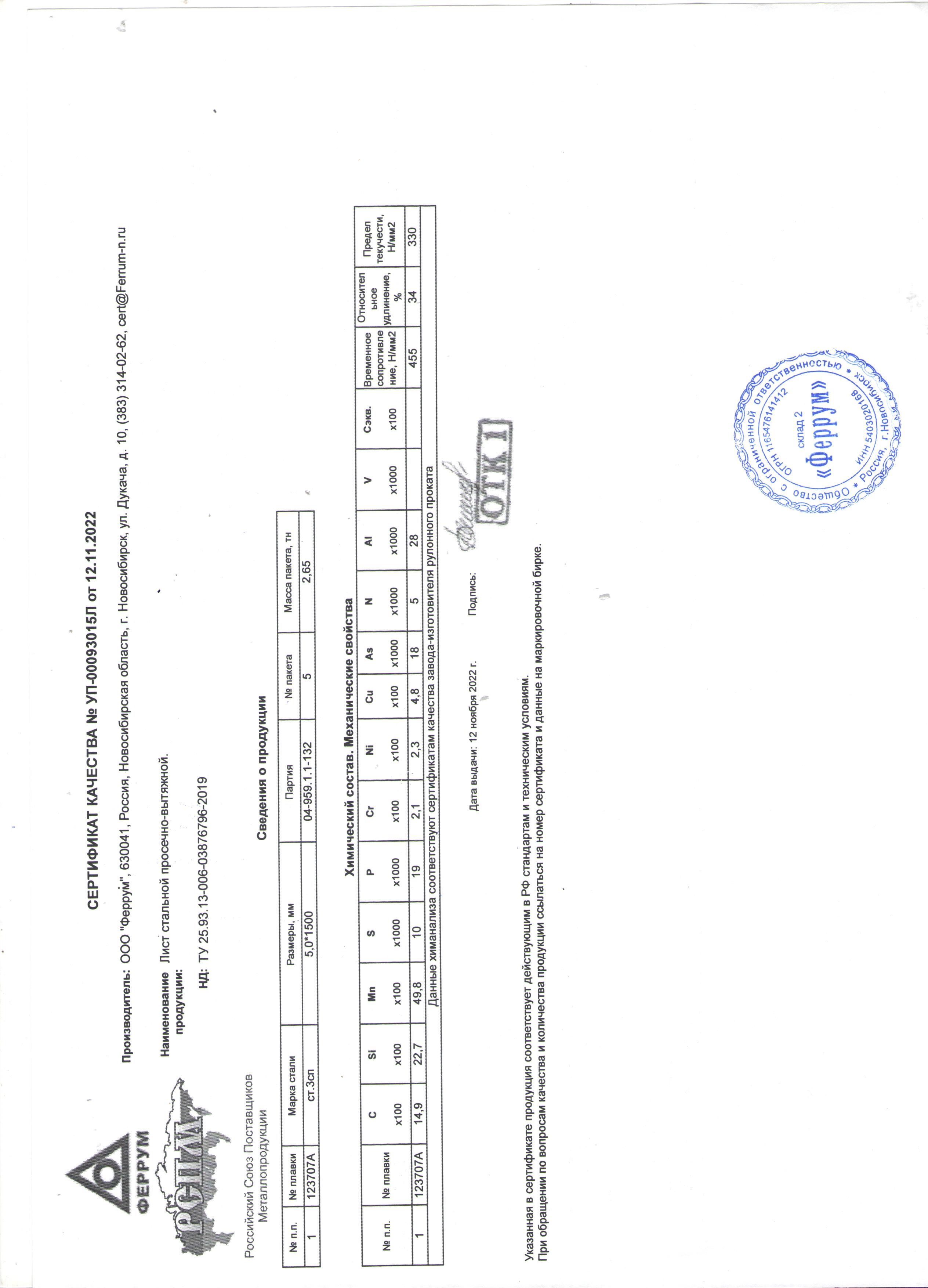 Лист 5,0 (1,5*6,0) г/к Ст.3 сп-5