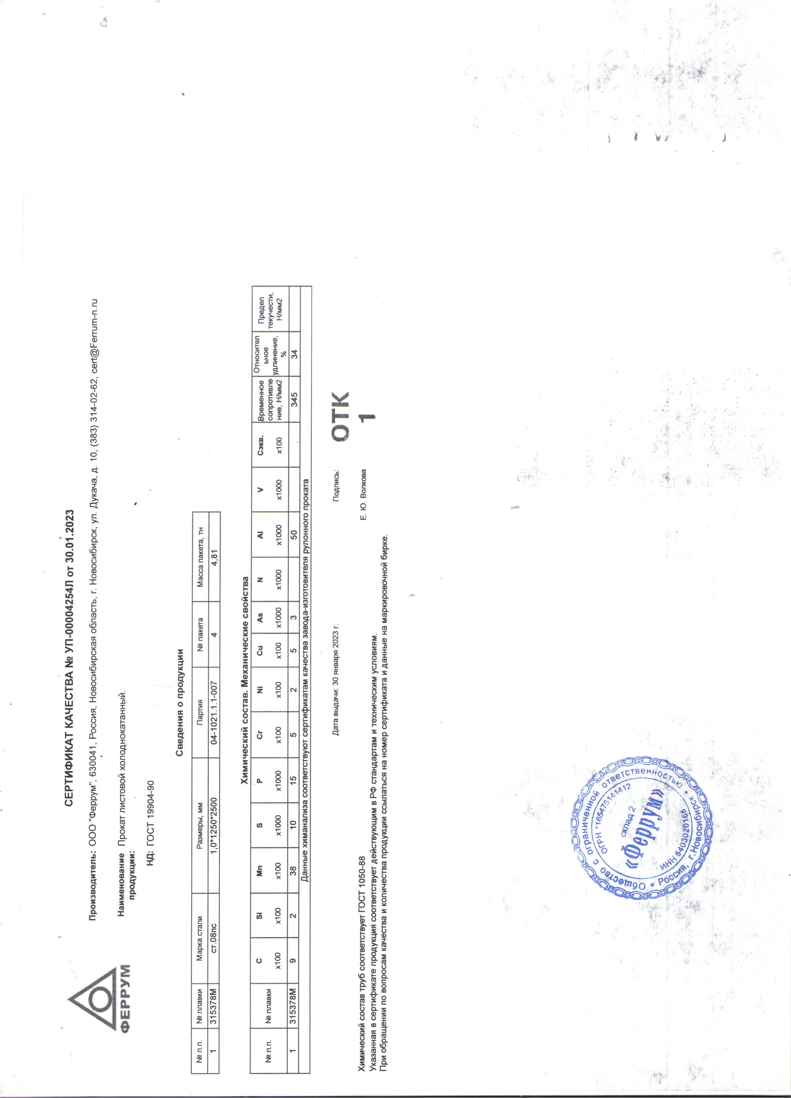 Лист 1,0 (1,25*2,5) х/к Ст.08ПС ГОСТ19904-90