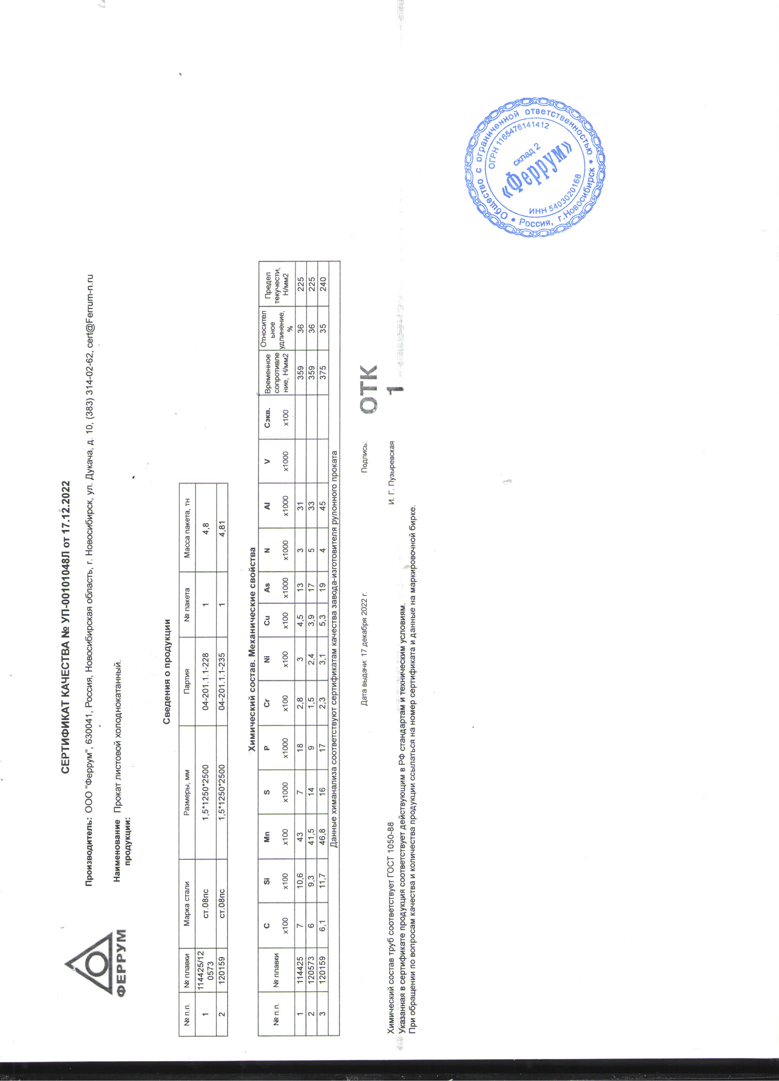 Лист 1,5 (1,25*2,5) х/к Ст.08ПС