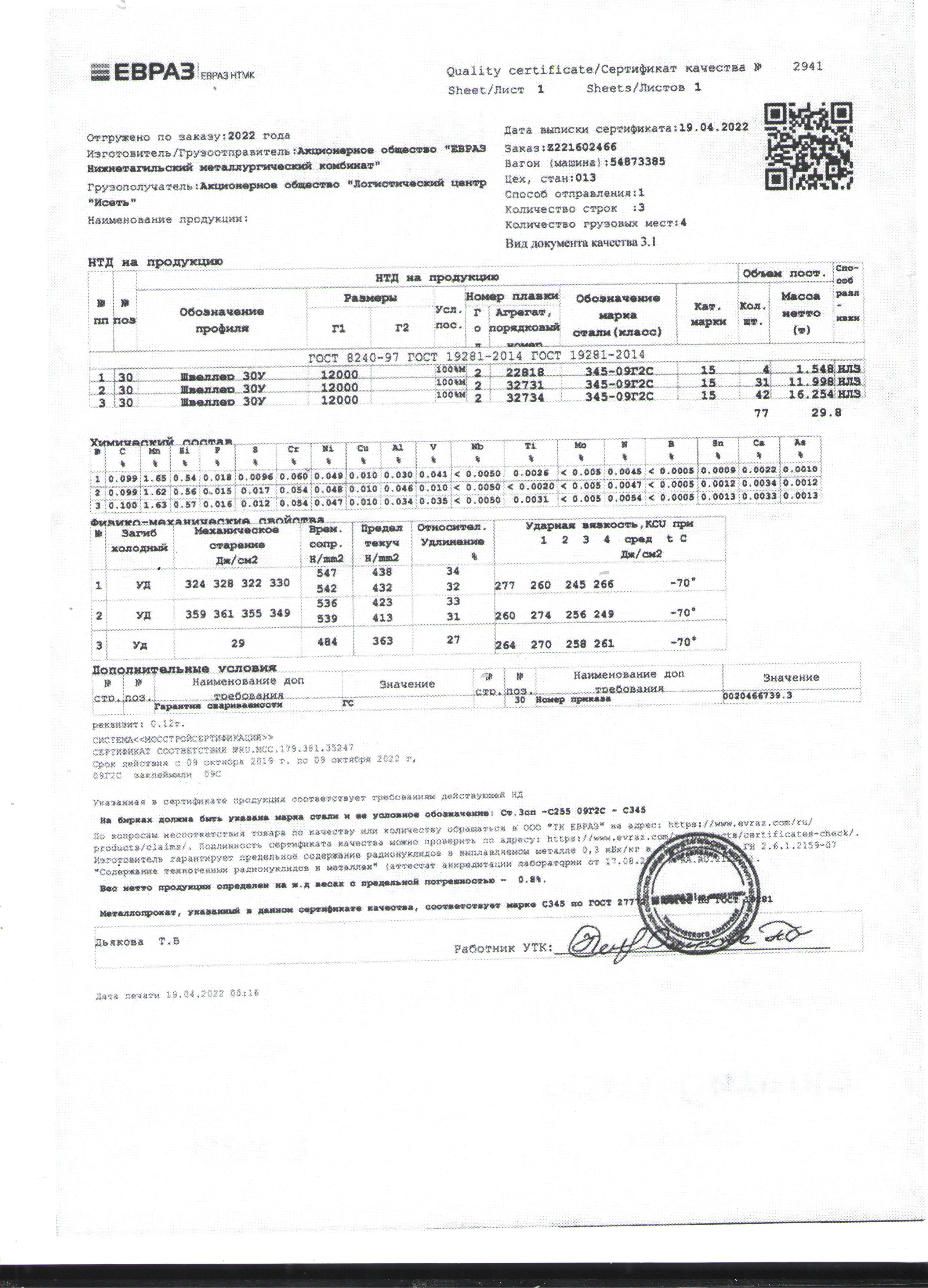 Сертификаты на товар