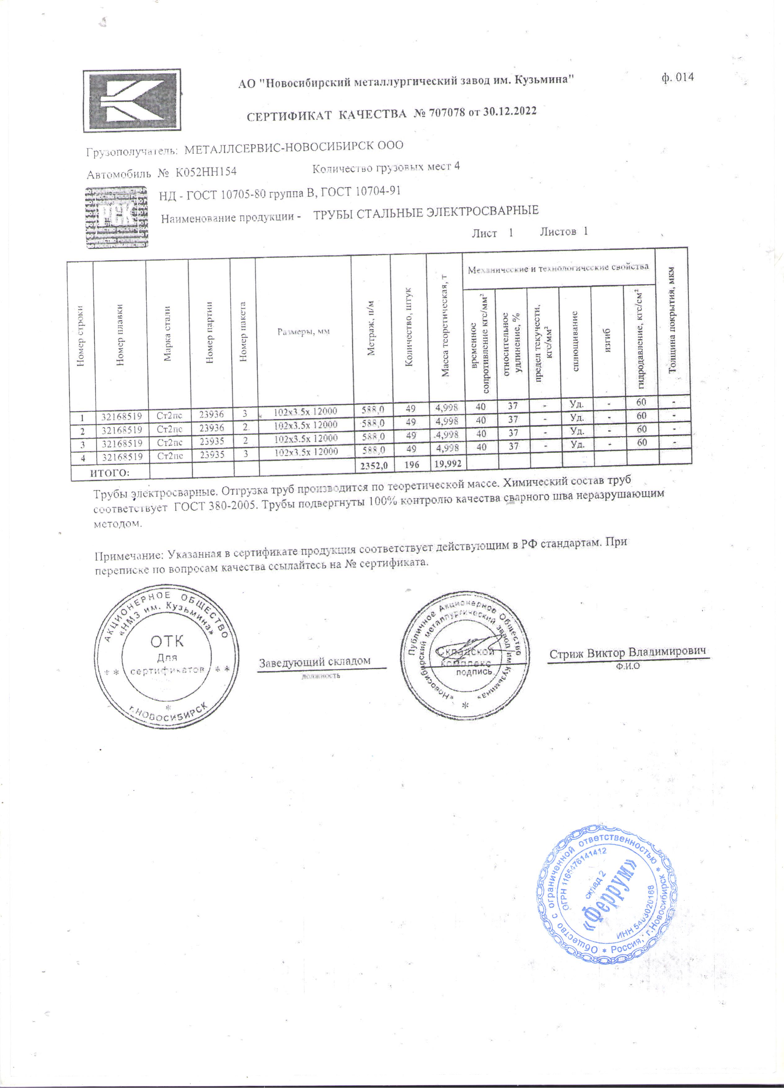 Труба 102/3,5 ГОСТ 10705-80 1/12м