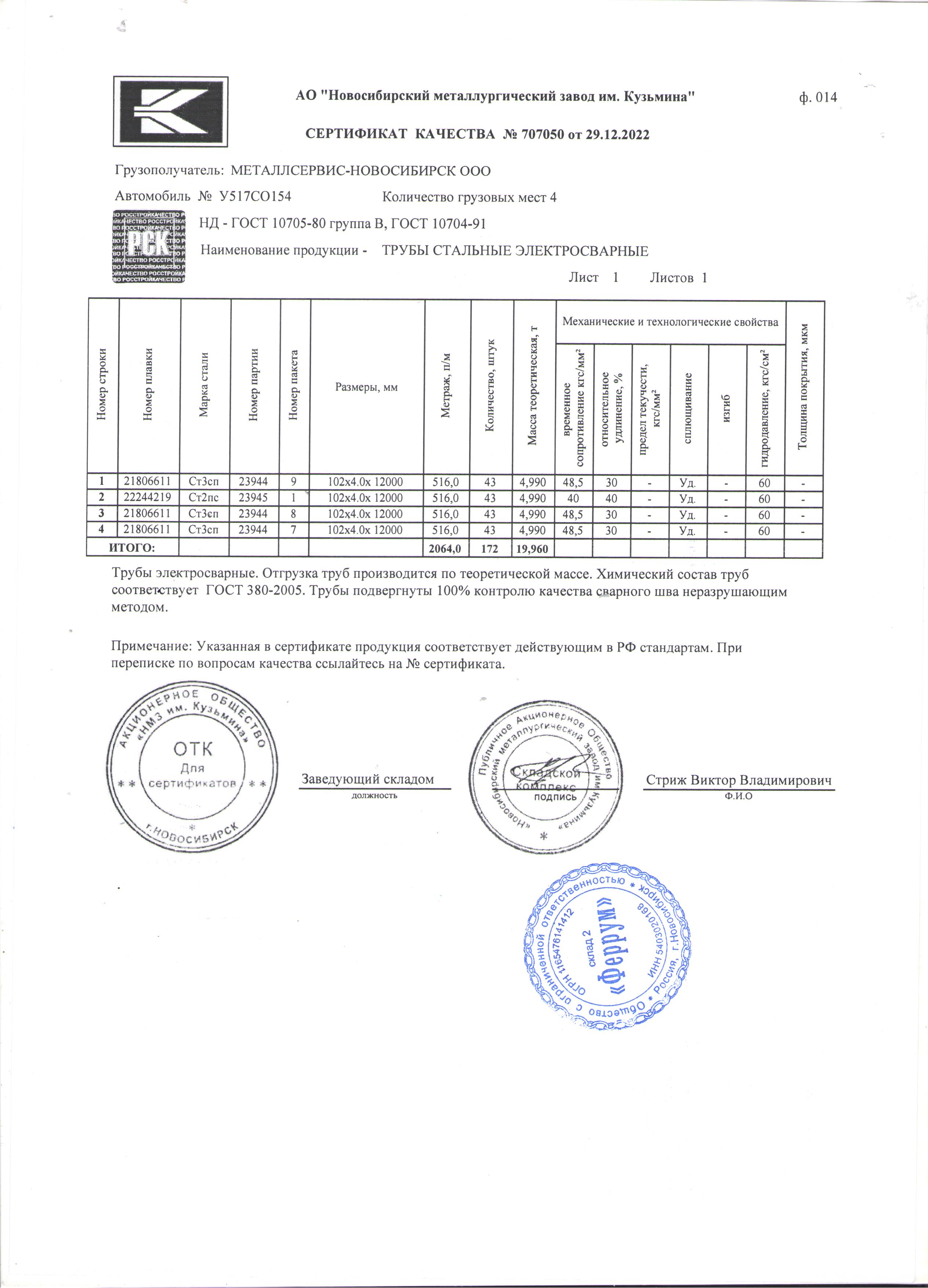 Труба 102/4,0 ГОСТ 10705-80 1/12м