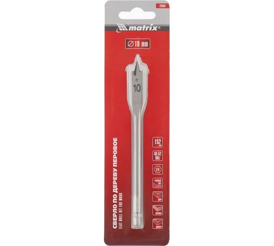 Сверло по дереву перовое 10мм, 6-гранный хвостик Matrix